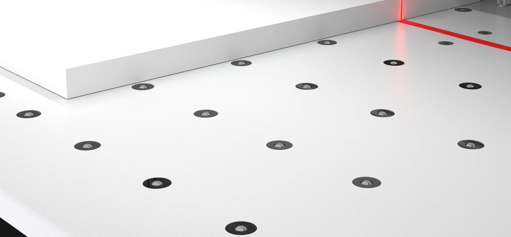 En effet, de l'air est soufflé à travers de petites ouvertures (buses à billes) dans le plateau de la table, créant ainsi un coussin d'air qui minimise la résistance au frottement entre la pile de papier et la surface de la table. Même de grandes quantités de papier peuvent ainsi être manipulées sans effort et confortablement.